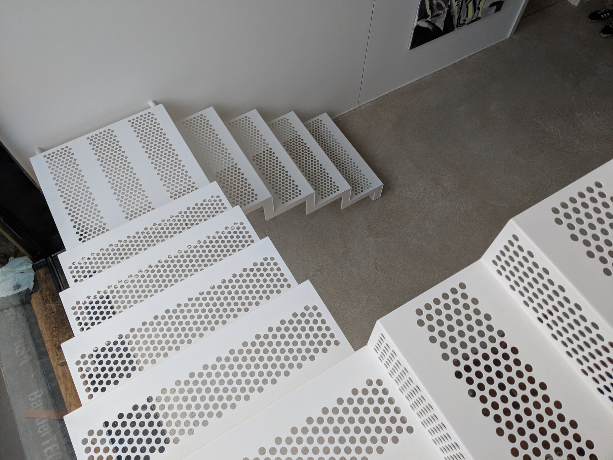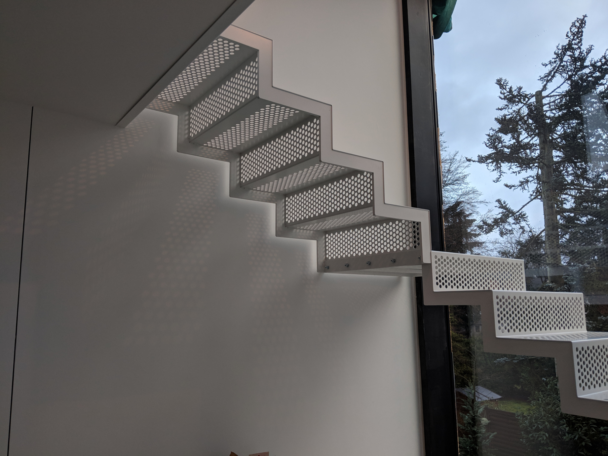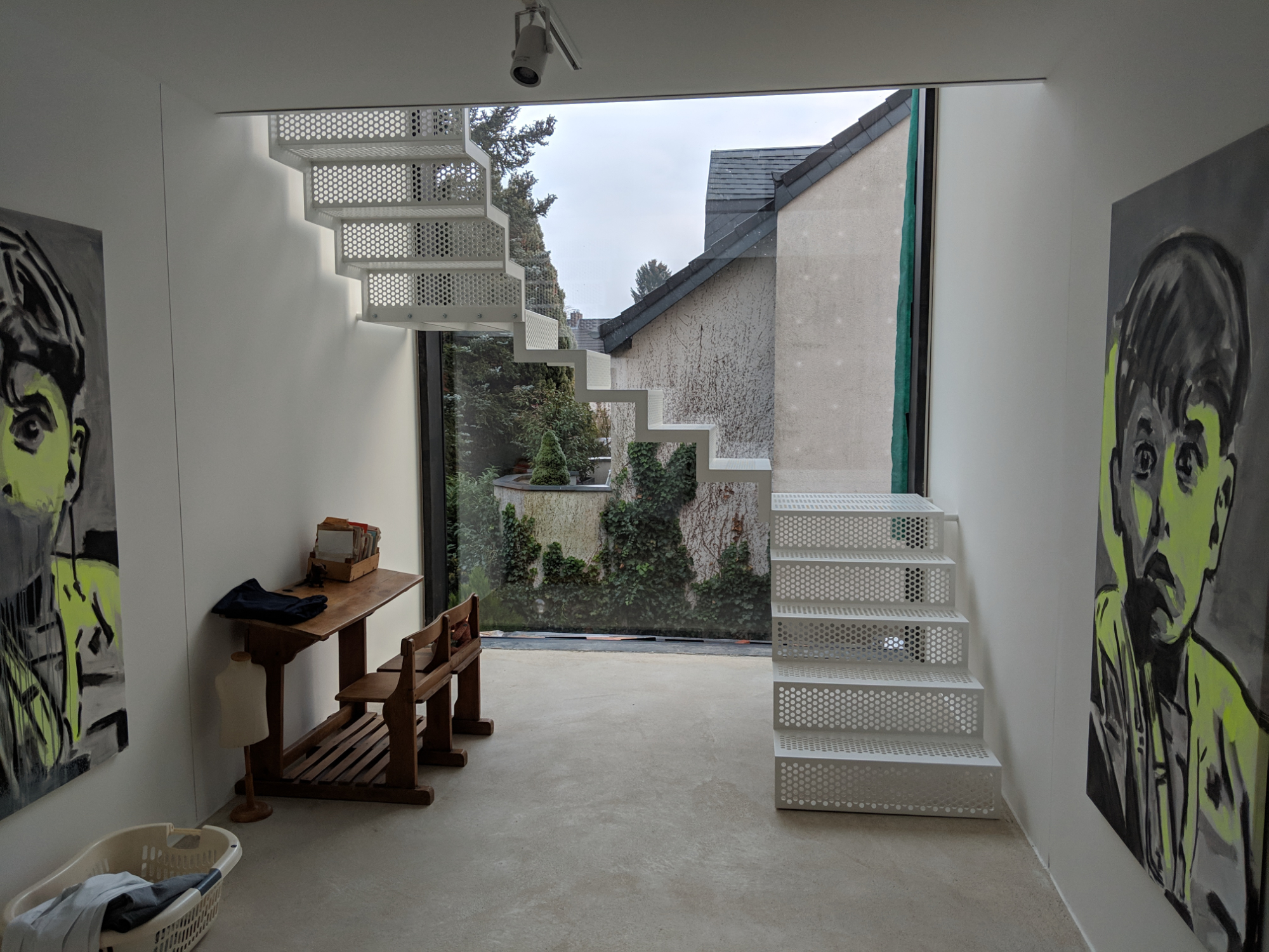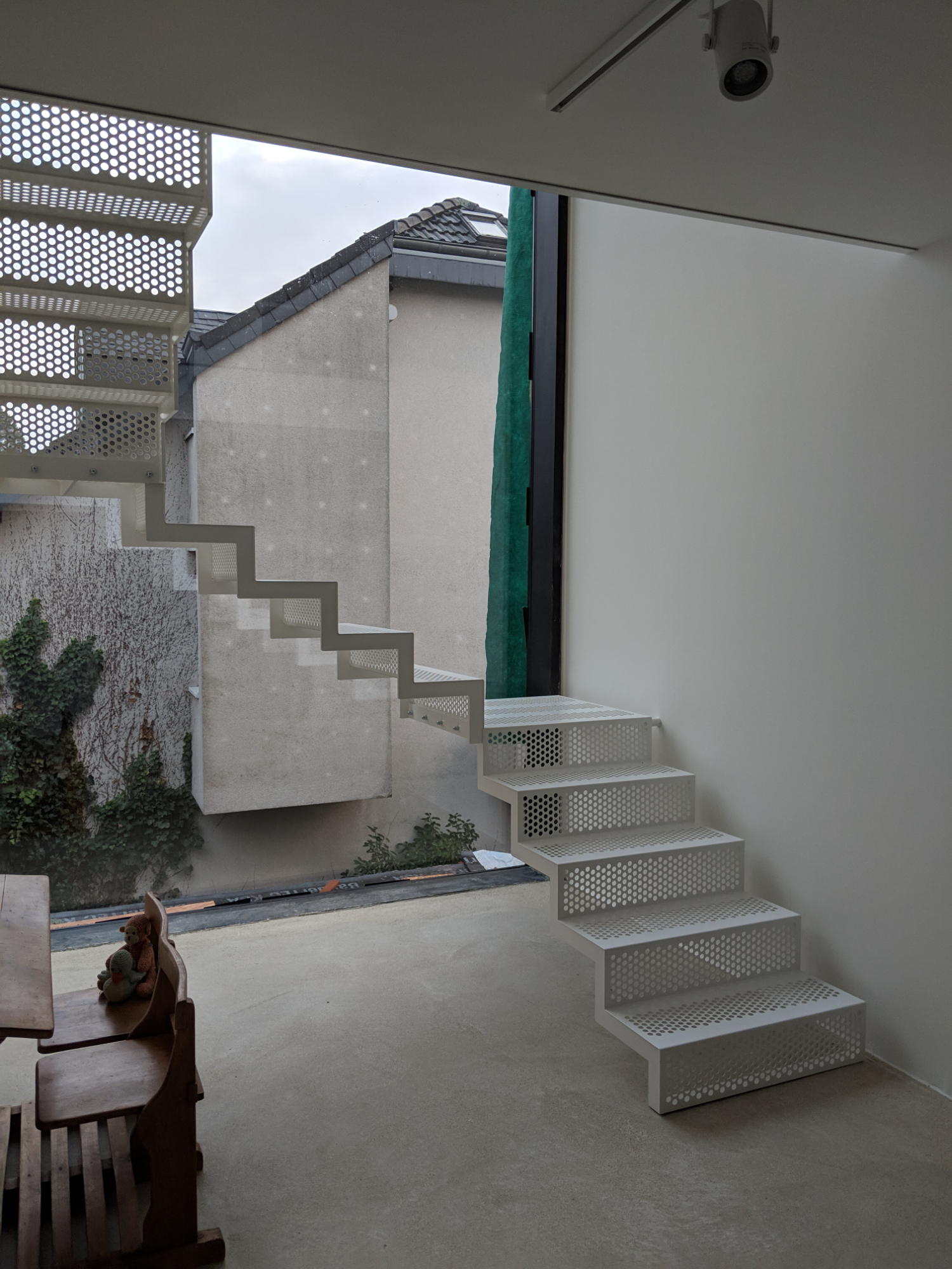 this structure, built from three identical sheet metal elements, reach the upper level of a family house.